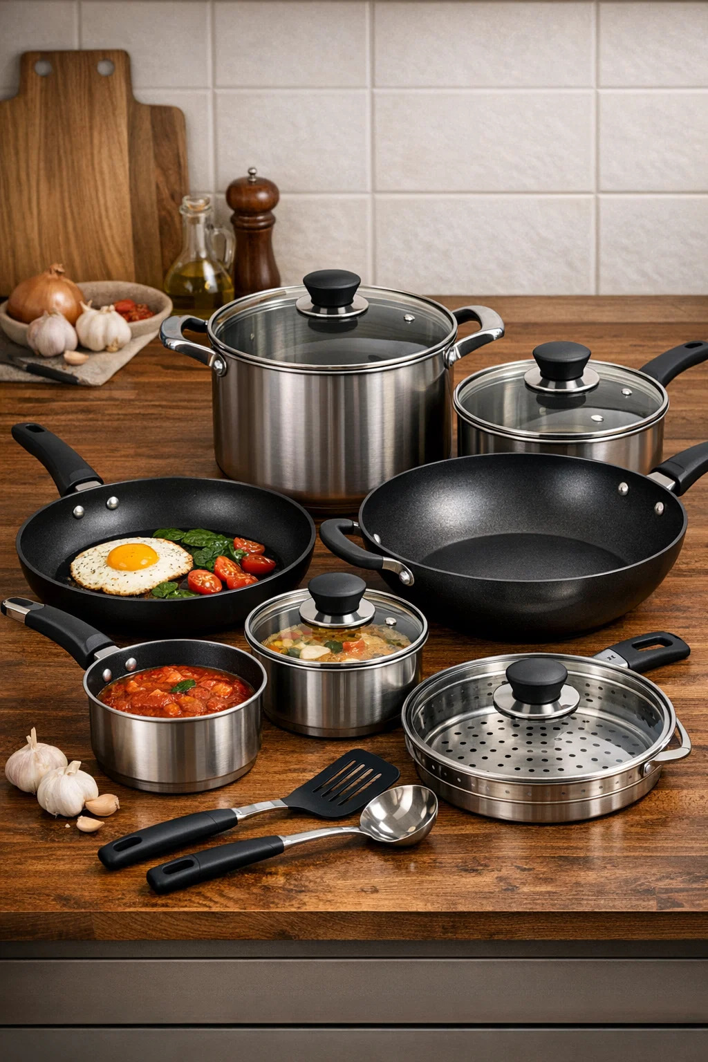 Kompletné sada kuchynského riadu je ako multifunkčná súprava nástrojov, ktorá obsahuje rôzne „profesionálne nástroje“ na manipuláciu s rôznymi prísadami a spôsobmi varenia. S touto kompletnou sadou hravo zvládnete všetko od jednoduchých raňajok s vyprážanými vajíčkami až po okázalú rodinnú večeru.
